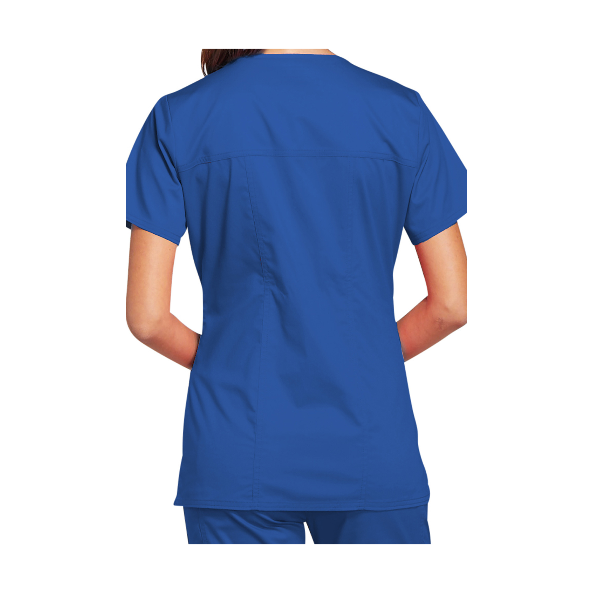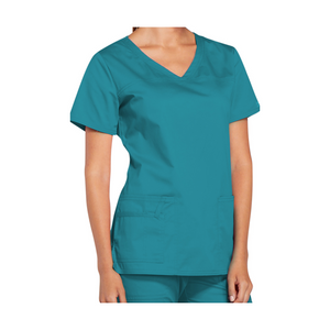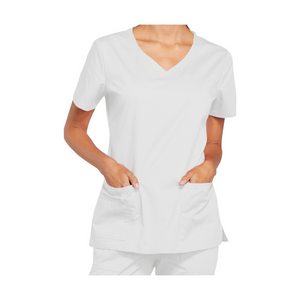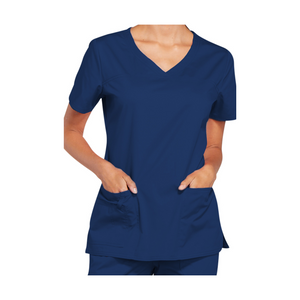 This modern V-neck tunic will be perfect for you thanks to its 3 pockets as well as its crossed front panels and side slits.