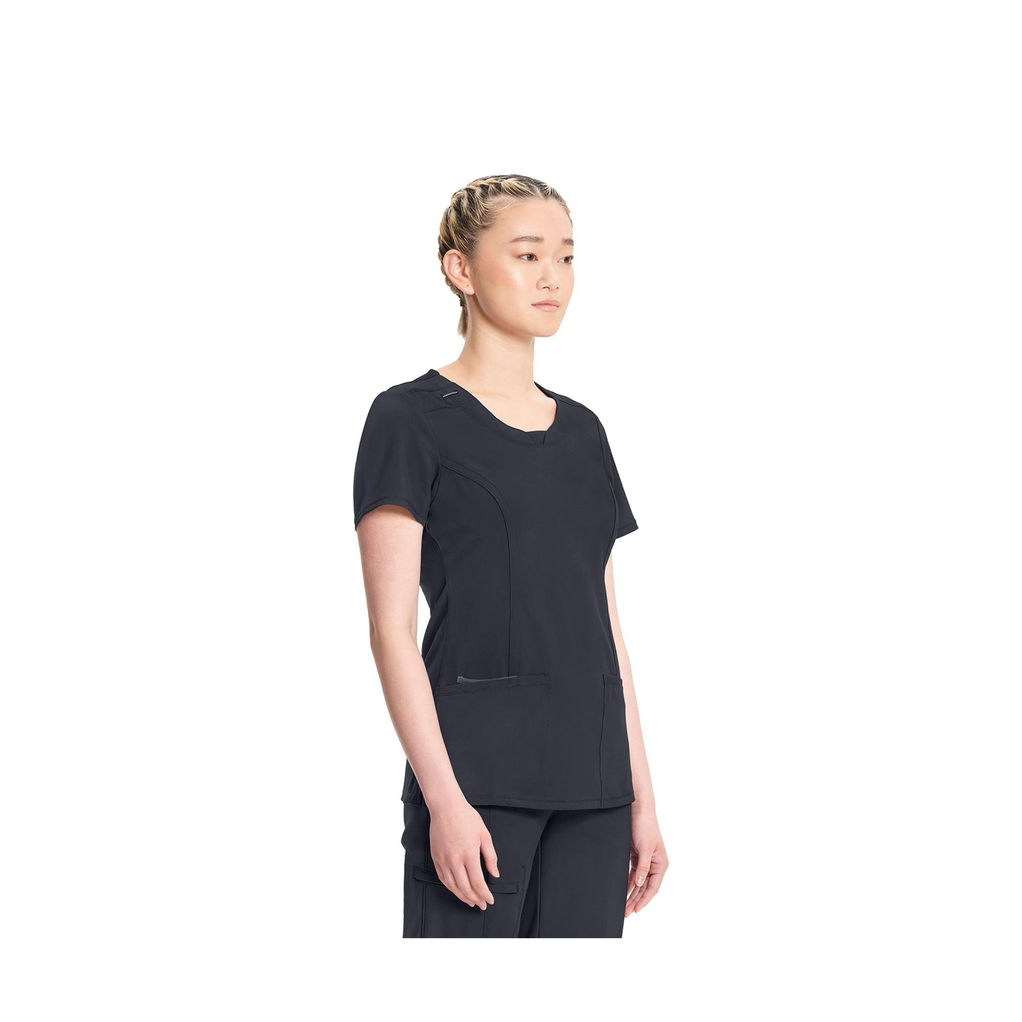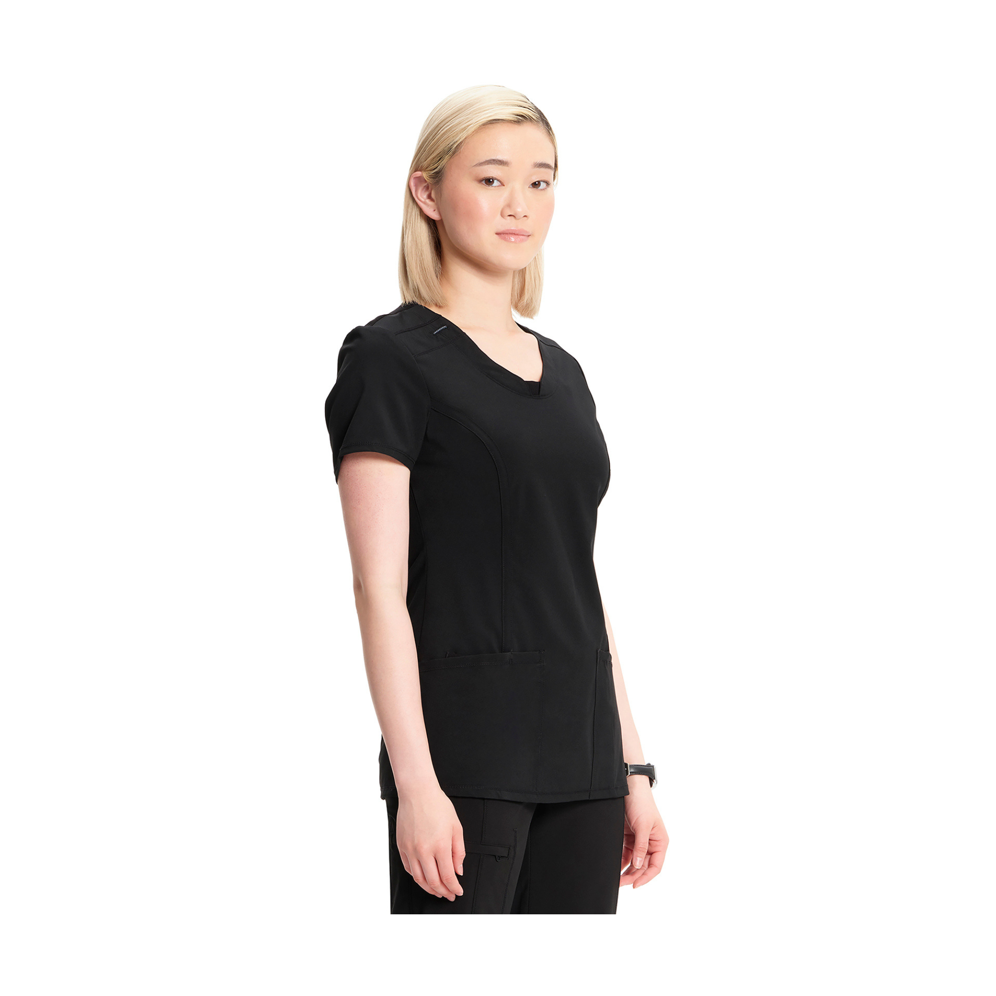• Elastic badge loop on right shoulder