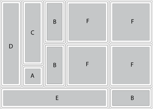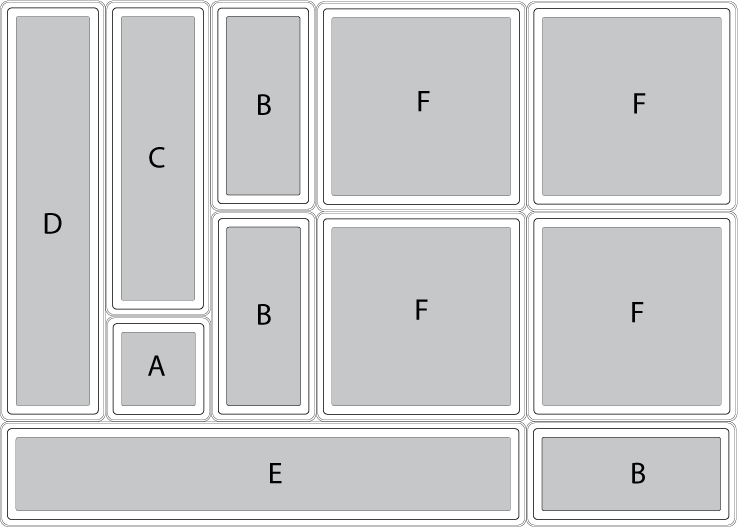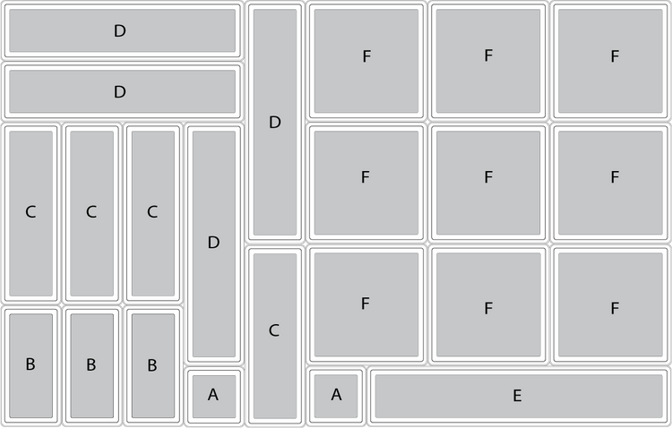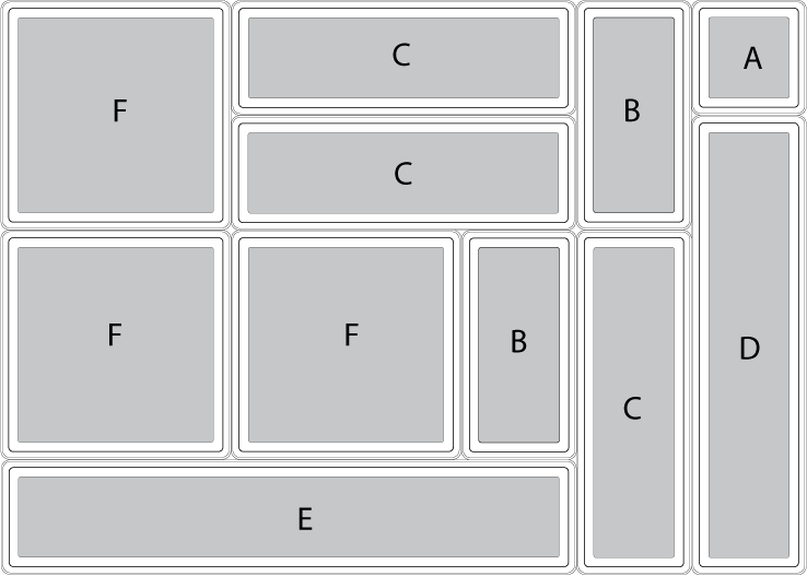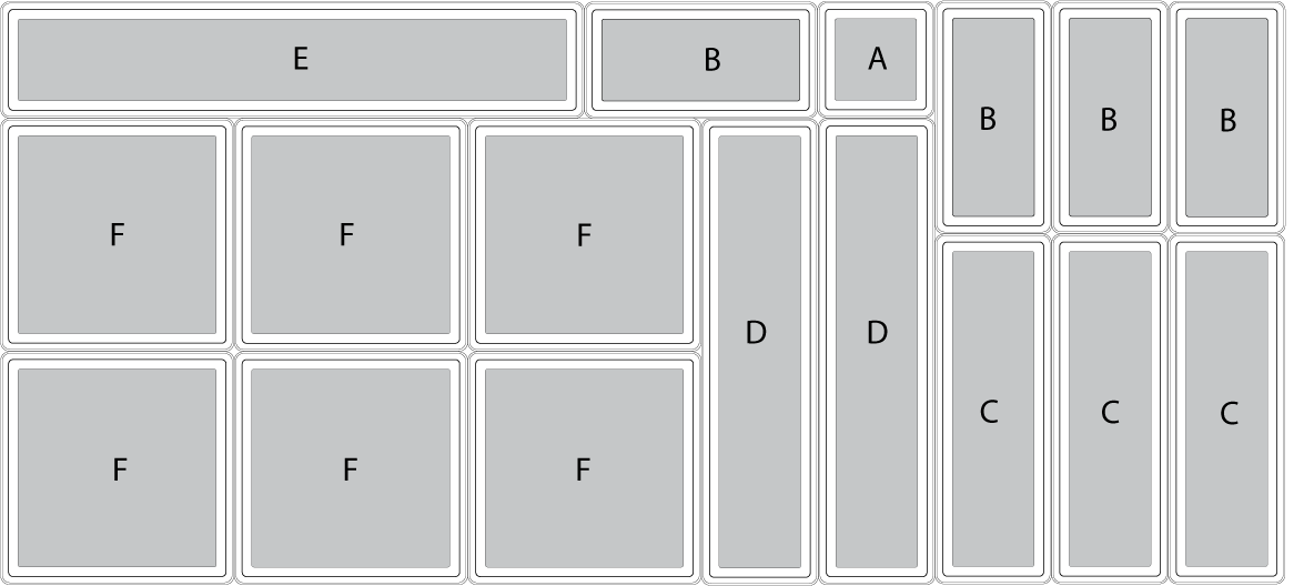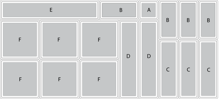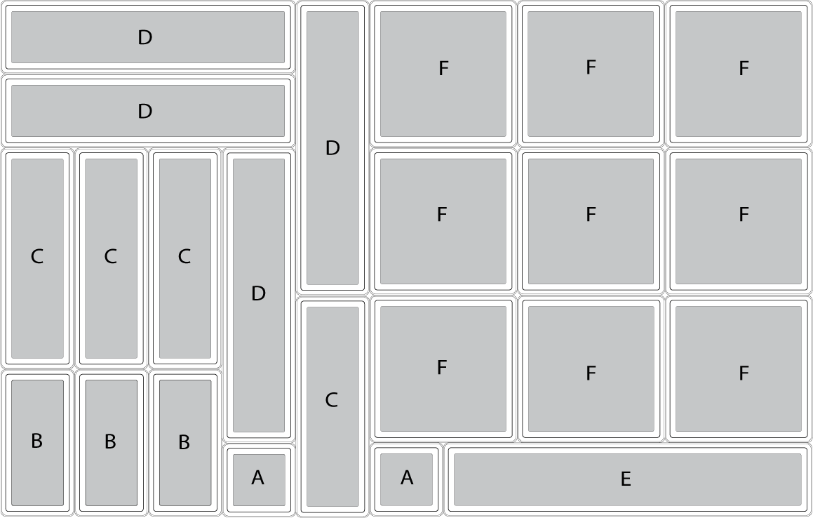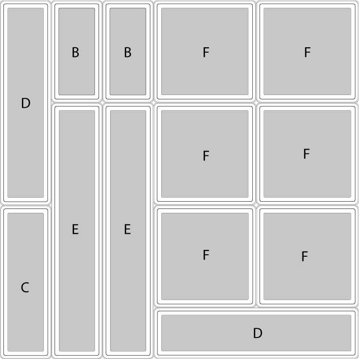 Boîte F: 15 / 15 / 5 cm