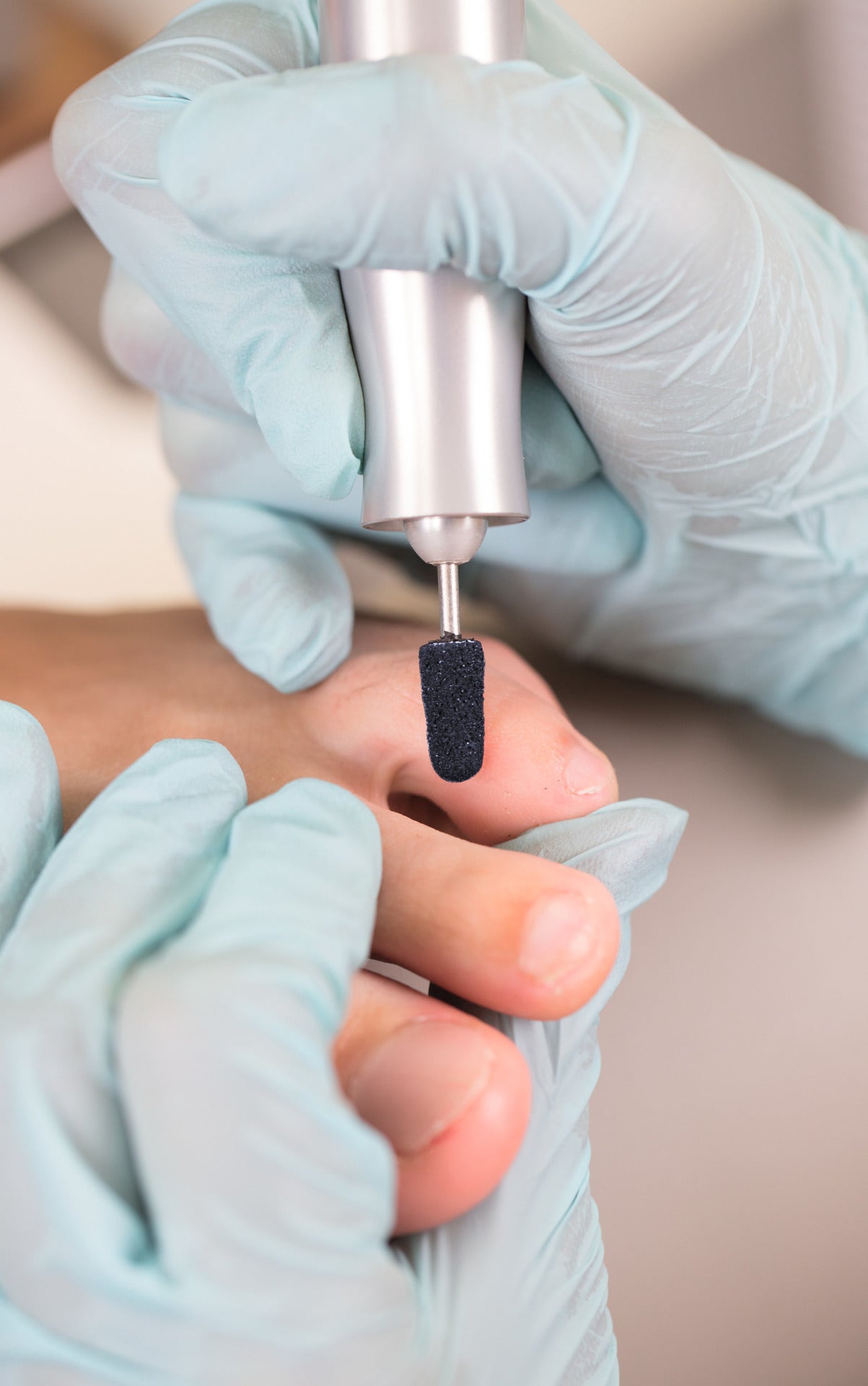 Capuchons de broyage pour enlever les couches cornées sèches et craquelées et pour lisser après une préparation rugueuse à l'aide d'un rabot ou d'un scalpel. Certifié comme dispositif médical.