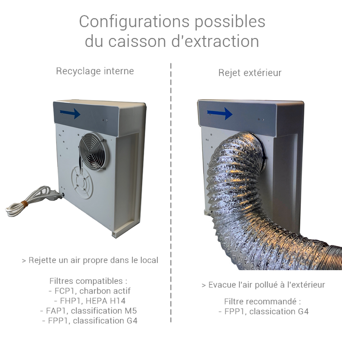 • Hotte portative adaptée au traitement des solvants, COV, fumées de soudure, petites particules etc