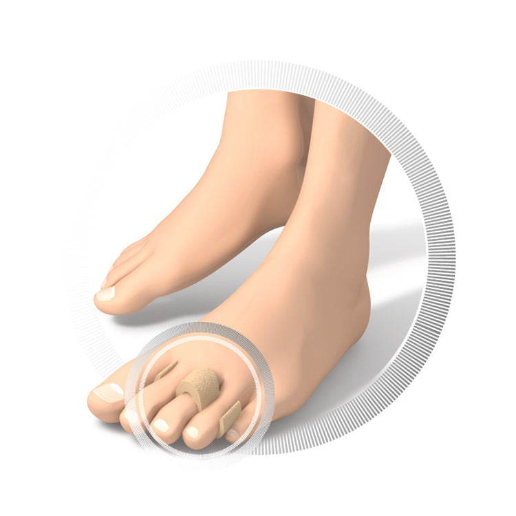 Serre-pieds en Lunairmed doux et doux pour la peau. Protège les orteils courbés de la pression douloureuse. Glissez le coussinet de protection sur les orteils courbés et stabilisez-le des deux côtés.