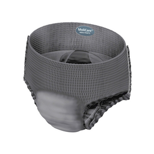 • Le voile externe en nontissé gris au toucher textile est intraversable et respirant. MoliCare® Premium Men pants se met et s'enlève comme un sous-vêtement classique. Il peut être retiré en déchirant les coutures latérales de la ceinture.