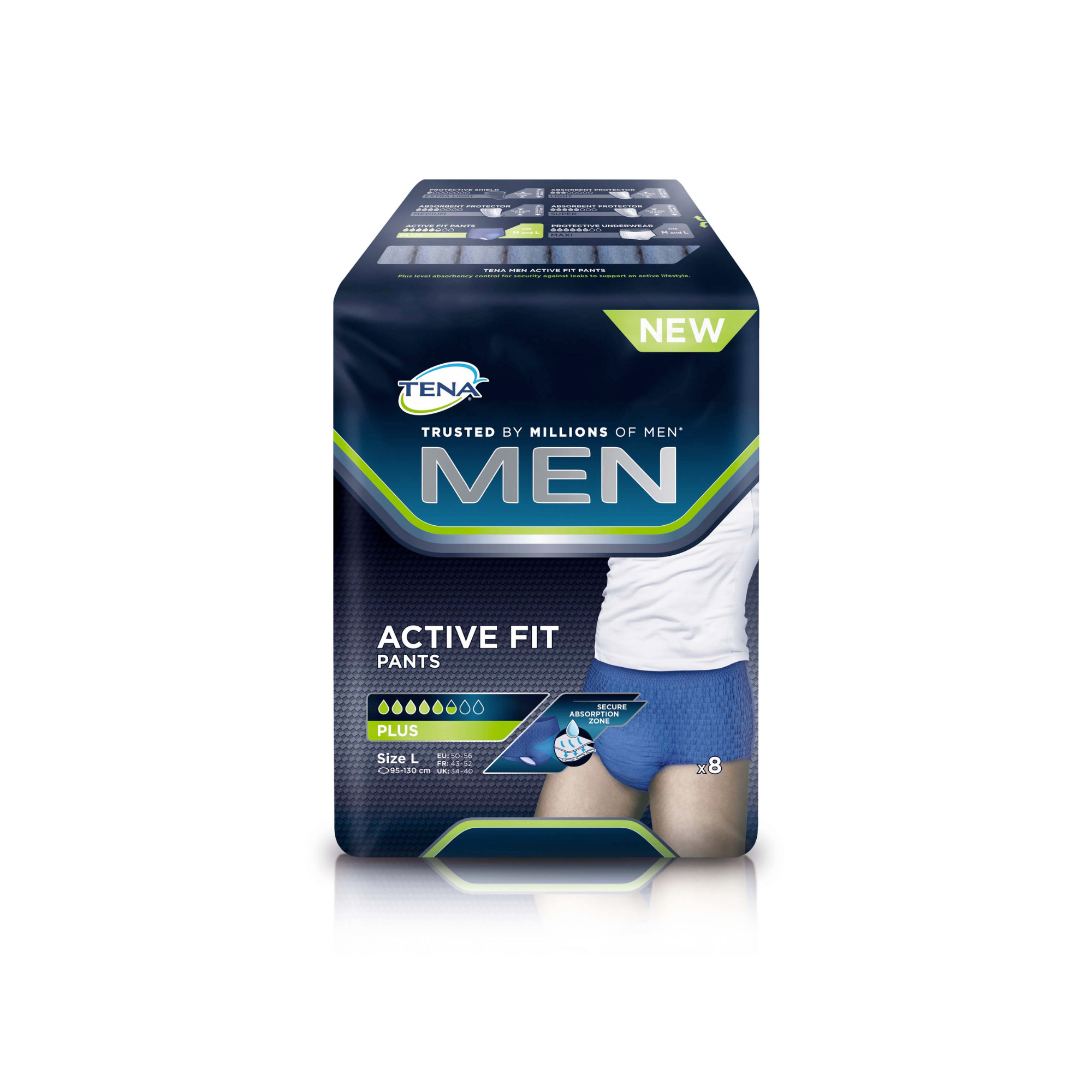 Pack 4x9/8U Tena Men Active Fit - 5/6 gouttes - 2 tailles - Tena